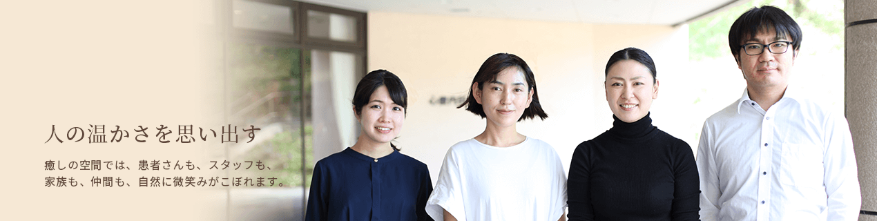 閉鎖的な病棟ではなく、症状に合わせて居心地の良さを意識した環境です。空間の隅々まで、スタッフ、建物、景色、お部屋など空間にストレスケアのための工夫をしています。